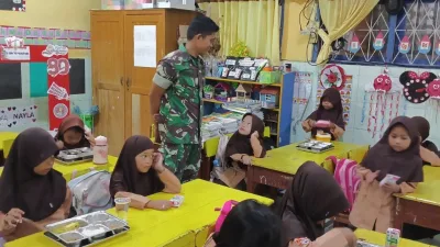 Kodim 1405/Parepae – Babinsa Koramil 1405-03/Bacukiki, Serda Zulkifli, melaksanakan pendampingan kegiatan pendistribusian program Makan Bergizi…