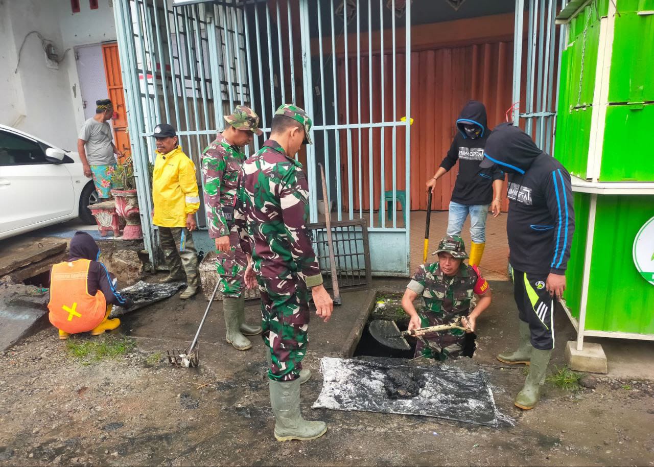 Cegah Banjir dan DBD, Koramil-04/Paleteang Kodim 1404/Pinrang Bersihkan Saluran Air