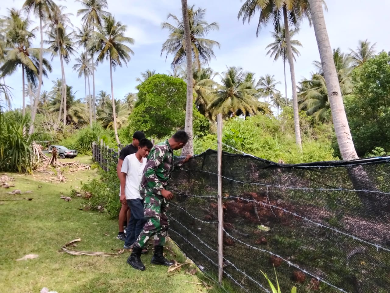 Simeulue – Babinsa Koramil 04/Salang Kodim 0115/Simeulue Serda Bahagia mendampingi warga untuk mengecek pagar kebun guna menghindari hewan ternak masuk yang dapat menyebabkan kerusakan tanaman, bertempat di Desa Nasrehe Kec. Salang, Kamis (08/05/2025).