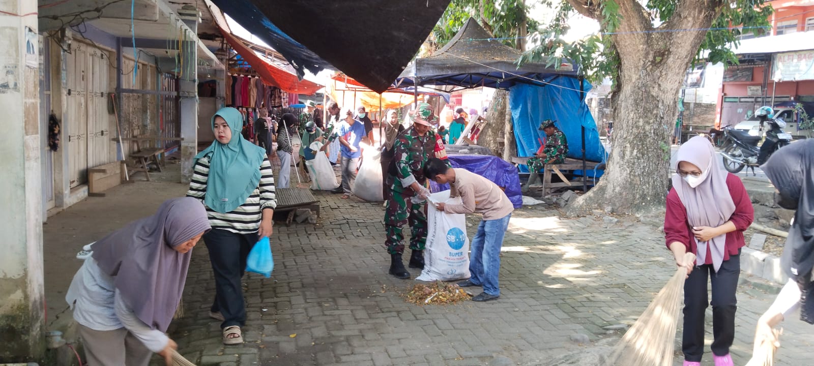 Enrekang – personil koramil 1419-02/Enrekang Melaksanakan karya bakti pembersihan pasar Enrekang dari tanah, rumput dan sampah lainnya sepanjang 150 meter di Kel. Juppandang Kec. Enrekang Kab. Enrekang. Selasa,(23/09/2025).