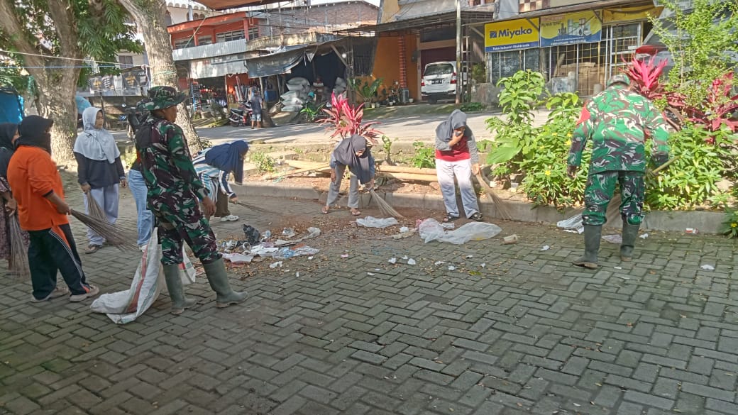 Enrekang – personil koramil 1419-02/Enrekang Melaksanakan karya bakti pembersihan pasar sentral jupandang dari tanah, rumput dan sampah lainnya sepanjang 400 meter di Lingk. Bungawalie Kel. Juppandang Kec. Enrekang Kab. Enrekang. Rabu,(16/06/2025).