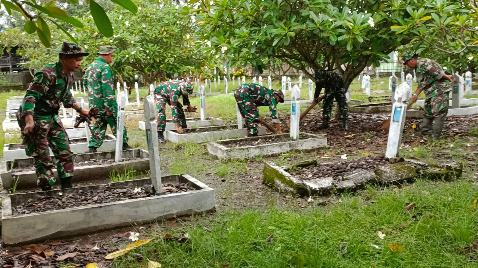 Pinrang_ Dalam rangka memperingati Hari Juang Kartika Tahun 2025, Kodim 1404/Pinrang melaksanakan kegiatan kerja bakti pembersihan Taman Makam Pahlawan (TMP) Palia yang terletak di Kelurahan Pacongan Kecamatan Paleteang Kabupaten Pinrang, Selasa (09/12/2025).