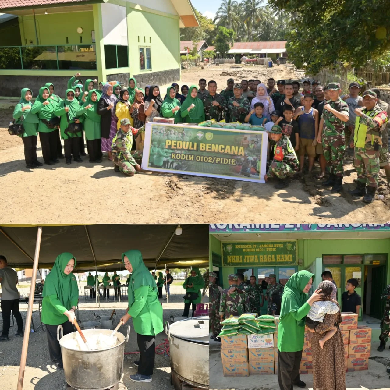 “Banjir yang melanda di Pidie Jaya selain merendam perumahan masyarakat juga berdampak langsung pada kantor koramil dan rumah dinas anggota di beberapa tempat. Kondisi ini tentu menambah beban bagi para prajurit yang selama ini berada di garis depan dalam membantu masyarakat,dan meraka juga perlu kita perhatikan” ujar Dandim.