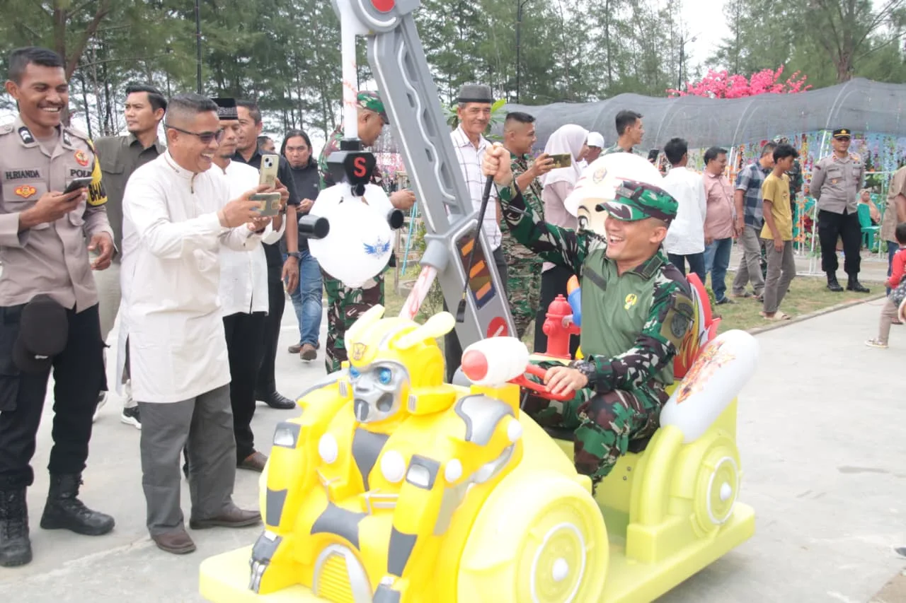 Aceh Selatan – Komandan Kodim 0107/Aceh Selatan, Letkol Inf Andrino D.N Lubis, S.Sos menghadiri acara launching Dragon Kidz Playground yang berlangsung di kawasan Pantai Cemara Gunung Terbang, Desa Terbangan, Kecamatan Pasi Raja, Kabupaten Aceh Selatan, Jumat (24/10/2025).