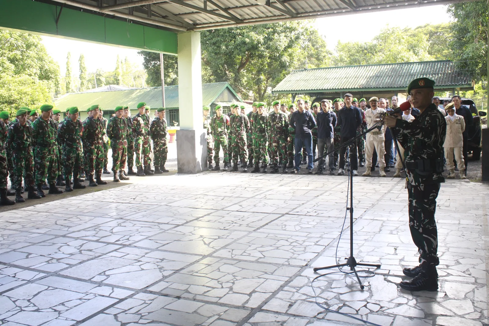 KODIM 1405/PAREPARE — Komandan Kodim (Dandim) 1405/Parepare S. Simanjuntak (Letkol Kav., S.I.P) memberikan Jam Komandan kepada seluruh personel Kodim 1405/Parepare yang terdiri dari para Perwira, Bintara, Tamtama serta Pegawai Negeri Sipil (PNS), bertempat di Makodim 1405/Parepare Jl. Jend. Ahmad Yani Km 4, Kelurahan Lapadde, Kecamatan Ujung, Kota Parepare.