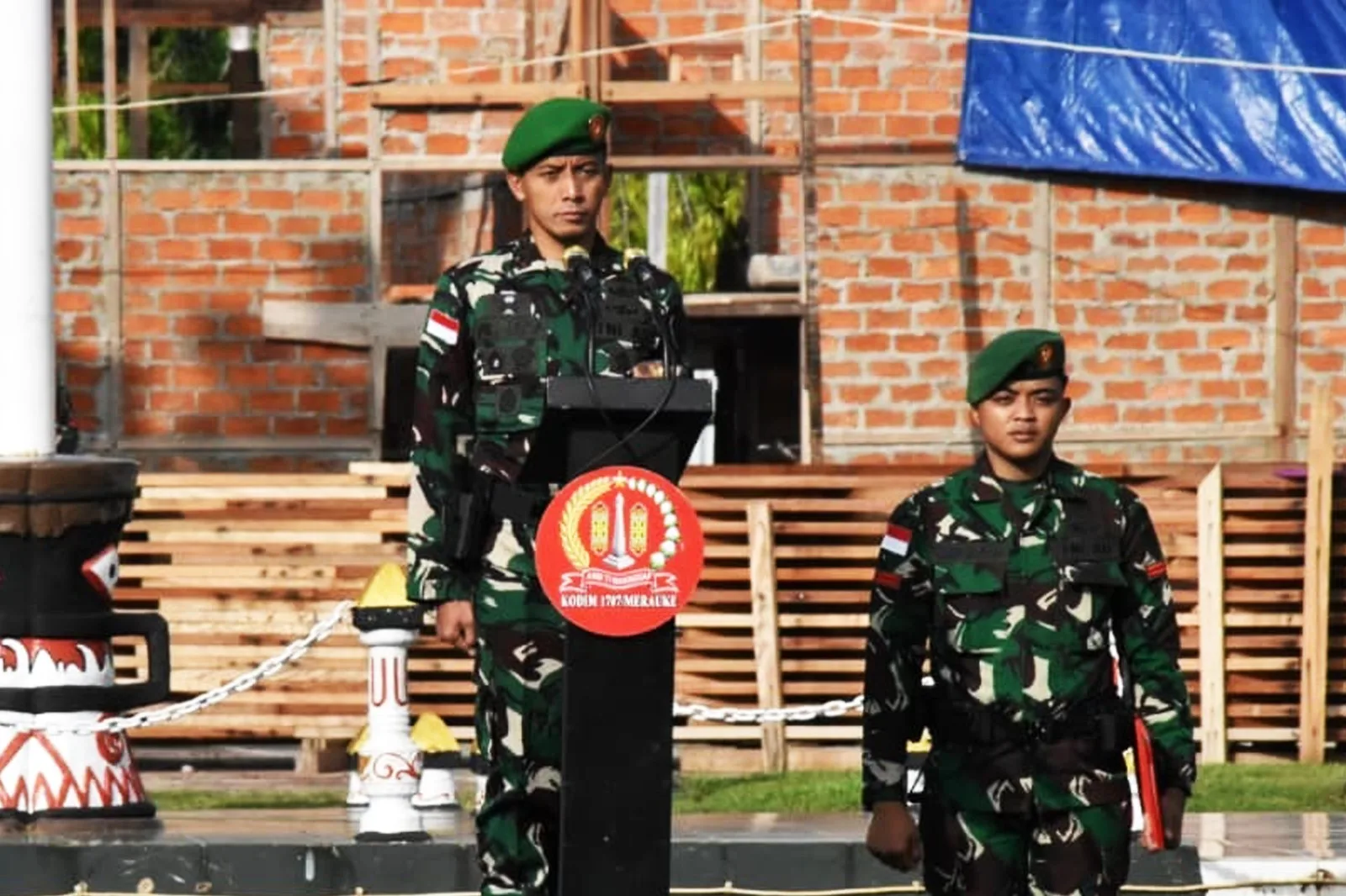Upacara bendera tujuh belasan diikuti ratusan Prajurit dan PNS yang terdiri dari Korem 174/ATW dan Kodim 1707/Merauke termasuk personel Kowad dari Korem 174/ATW serta para Perwira Pertama (Pama) gabungan Korem 174/ATW dan Kodim 1707/Merauke.