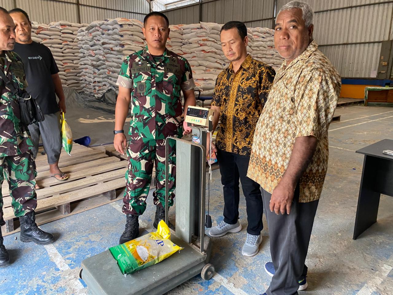 Kegiatan ini dilaksanakan Dandim yang didampingi Pasi Ter Kodim 1805/Raja Ampat yang di wakili oleh danramil 08 Ayau letda Eklief obinaru untuk memantau langsung ketersediaan dan keamanan stok pangan, khususnya beras, serta mengantisipasi potensi fluktuasi pasokan bahan pokok di wilayah Kabupaten Raja Ampat.