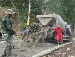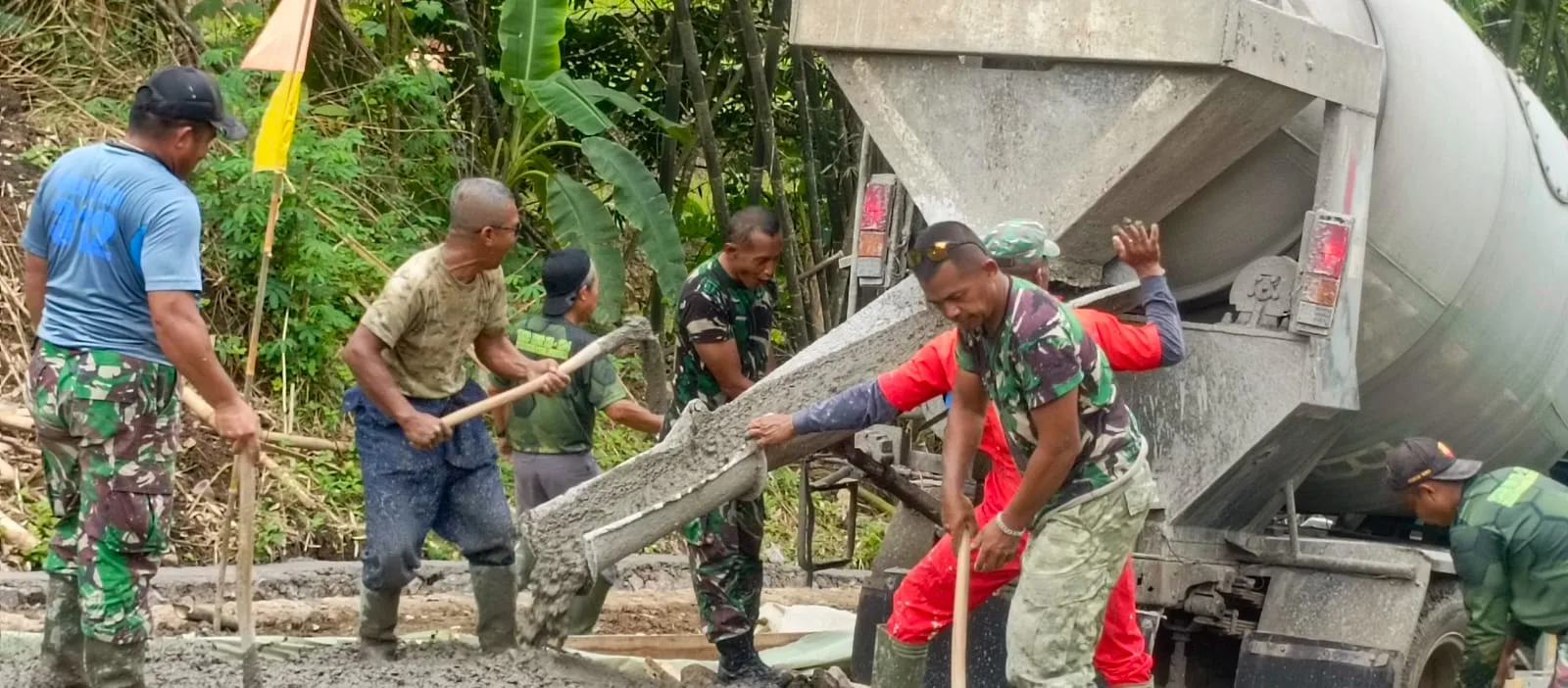 Dansatgas Kompi (Danki) TMMD ke-127 Kodim 0607/Kota Sukabumi, Kapten Arm Andriono, bersama tim Satgas TMMD melaksanakan kegiatan pengecoran jalan sepanjang 200 meter yang menghubungkan Kampung Mekarsari dengan Kampung Cijolang. Kegiatan ini merupakan bagian dari sasaran fisik program TNI Manunggal Membangun Desa (TMMD) ke-127 Tahun Anggaran 2026.
