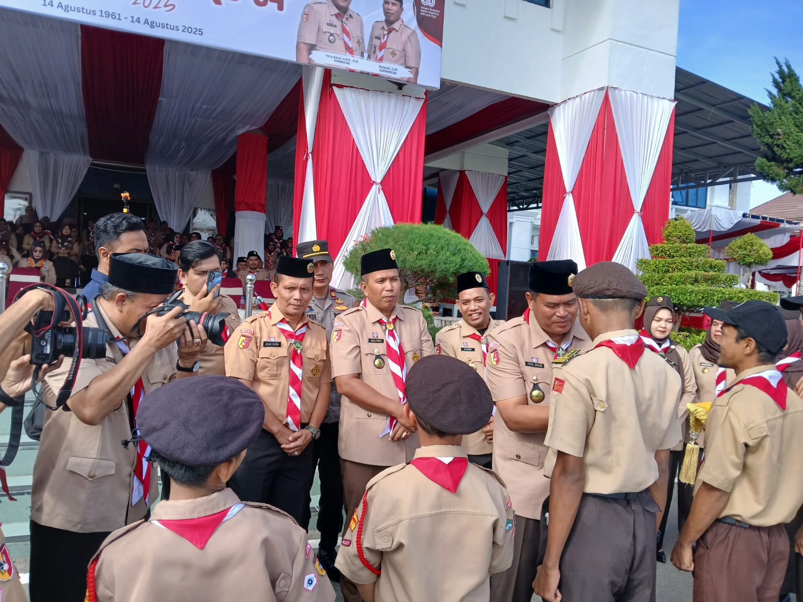 PARIAMAN, – Danramil 05/Lubuk Alung Kaptem Czi Delri Putra mewakili Dandim 0308/Pariaman hadiri kegiatan di lapangan Balai Kota dalam rangka Hari Pramuka ke 64 tahun yang di selenggarakan di Lapangan Balai Kota Pariaman, Jl. Imam bonjol no 44, Desa Cimparuh, Kecamatan Pariaman tengah, Kota Pariaman, Kamis (21/08/2025).