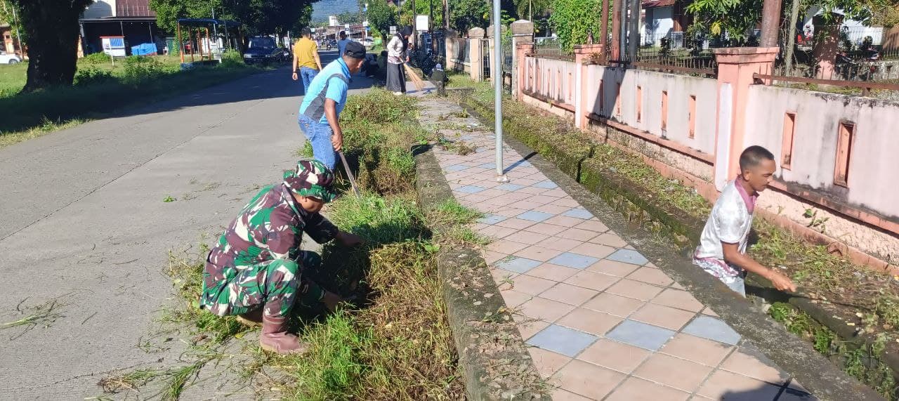 Kehadiran personil Babinsa dari Koramil-08 semakin menambah semangat masyarakat dalam melaksanakan karya bakti.