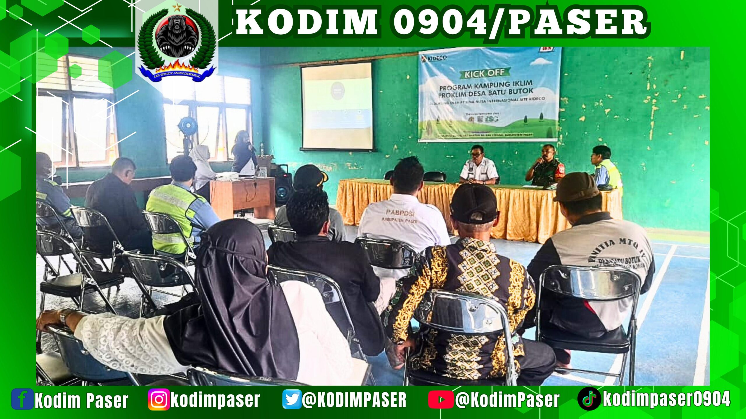 Kodim 0904/Psr, Korem 091/ASN, Kodam VI/Mlw – Danramil 0904-07/Muara Komam, Danramil Lettu Inf. Qomarul Huda mengikuti kegiatan “KICK OFF” Program Kampung Iklim Proklim Desa Batu Botuk di Dukung oleh PT. Bima Nusa Internasional bertempat di Ruang Pertemuan Desa Batu Botuk, Kec. Muara Komam, Kab. Paser. Selasa (10/6/2025)