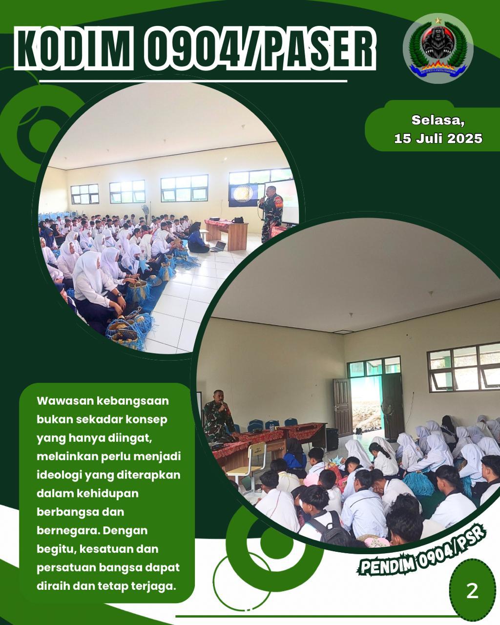 Kodim 0904/Psr, Korem 091/ASN, Kodam VI/Mlw – Pada Kegiatan Masa Pengenalan Lingkungan Sekolah SMK PGRI Muara Komam, Danramil 0904-07/Mkm Lettu Inf Qomarul Huda dipilih menjadi narasumber tentang Wawasan Kebangsaan yang bertempat di Lab Bahasa SMK PGRI Muara Komam, Jln Negara Km. 170, Kel. Muara Komam, Kec. Muara Komam, Selasa (15/7/2025).