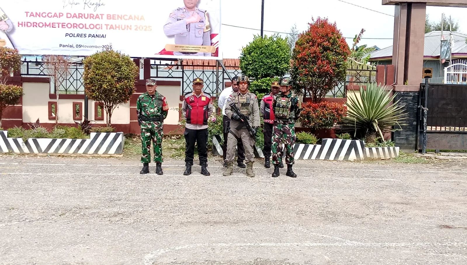 Paniai – Kapten Inf Eko Warsito selaku Danramil 1703-01/Enarotali turut hadir dalam kegiatan Apel Kesiapan Tanggap Darurat Bencana Hidrometeorologi yang digelar oleh Polres Paniai, bertempat di Lapangan Apel Polres Paniai, Kampung Madi, Jln. Bhayangkara No 2, Distrik Paniai Timur, Kabupaten Paniai, Provinsi Papua Tengah, Kehadiran Danramil merupakan bentuk sinergitas TNI bersama Polri dan unsur pemerintah daerah dalam menghadapi potensi bencana alam di wilayah Kabupaten Paniai. Pada Rabu (05/11/2025).