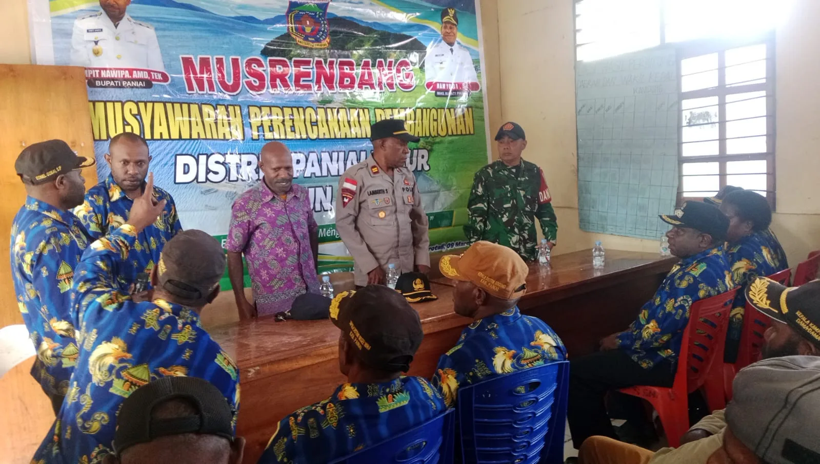 Kepala Distrik Paniai Timur, Luziens Jakobus Yogi, S.Pd, dalam arahannya menyampaikan bahwa kegiatan Musrenbang menjadi momentum penting bagi pemerintah distrik dan masyarakat untuk bersama-sama menyampaikan berbagai usulan pembangunan demi kemajuan daerah dan kesejahteraan masyarakat.