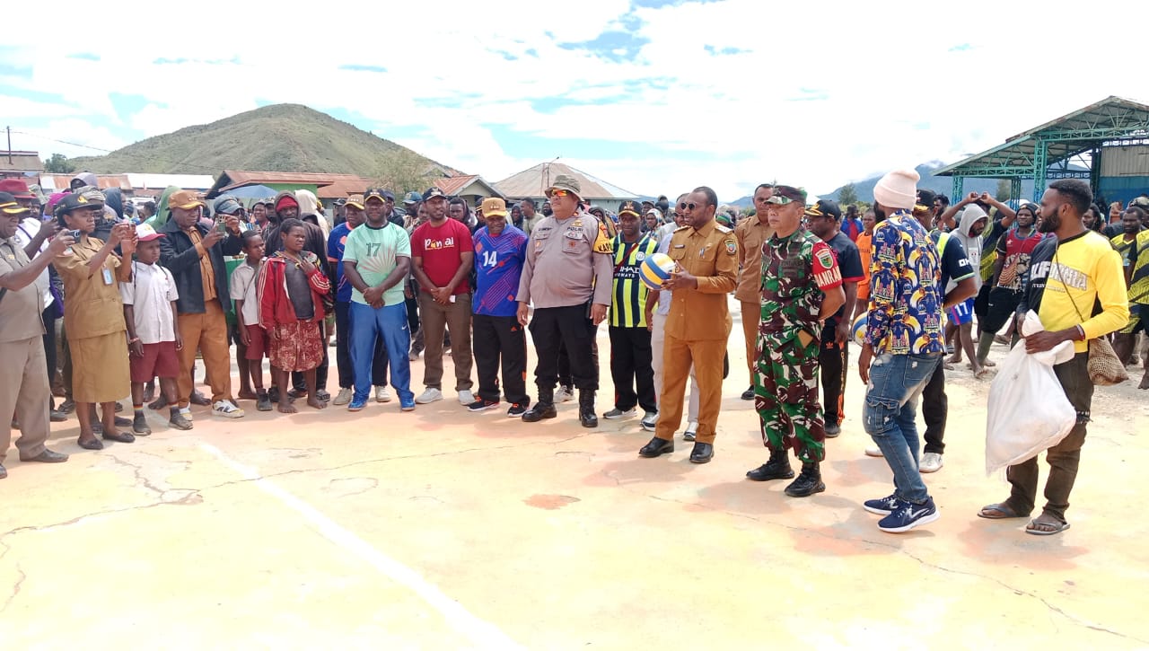 DANRAMIL 1703-01/ENAROTALI HADIRI PEMBUKAAN TURNAMEN BOLA VOLI ANTAR DISTRIK SEKABUPATEN PANIAI DALAM RANGKA HUT RI KE-80 TAHUN 2025