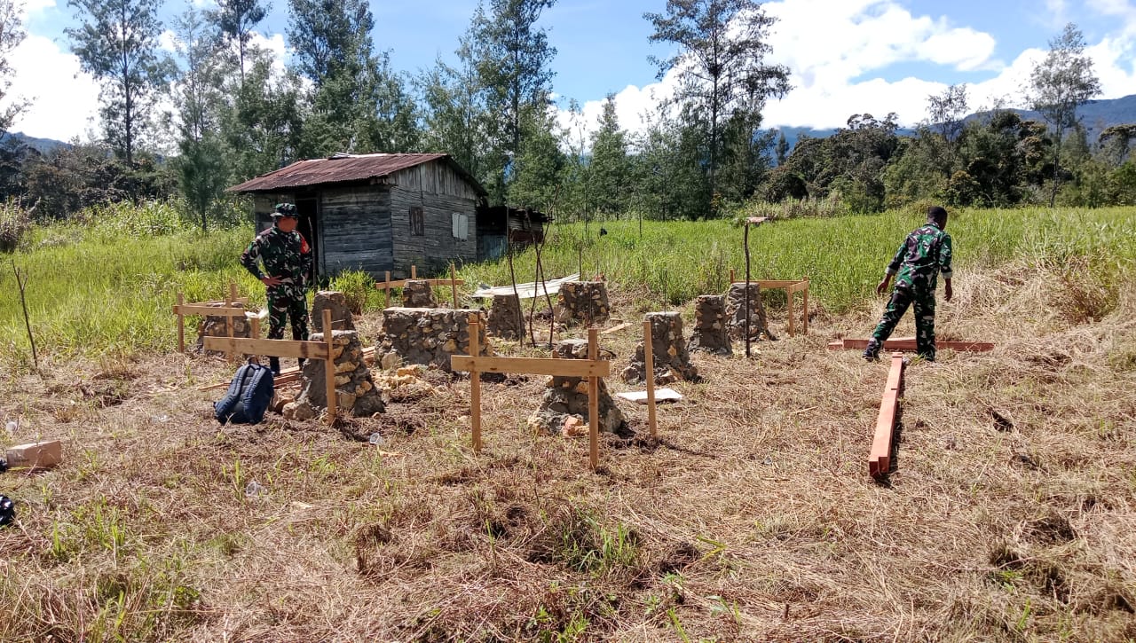 Bibida – Wujud kepedulian dan kebersamaan antara TNI dan masyarakat kembali ditunjukkan oleh Danramil 1703-01/Enarotali, Kapten Inf Eko Warsito bersama Babinsa yang langsung turun ke lapangan Ikut Membantu Dalam pengerjaan Karya Bakti rehab Rumah Tidak Layak Huni (RTLH) di wilayah teritorial, Proses yang di kerjakan pada Hari ini adalah mendirikan Tiang-tiang dalam pembangunan Rumah milik Bapak Yosep Zonggonau (Kepala suku Distrik Bibida) Bertempat di Kampung Bibida, Distrik Bibida, Kabupaten Paniai, Selasa (06/08/2025).