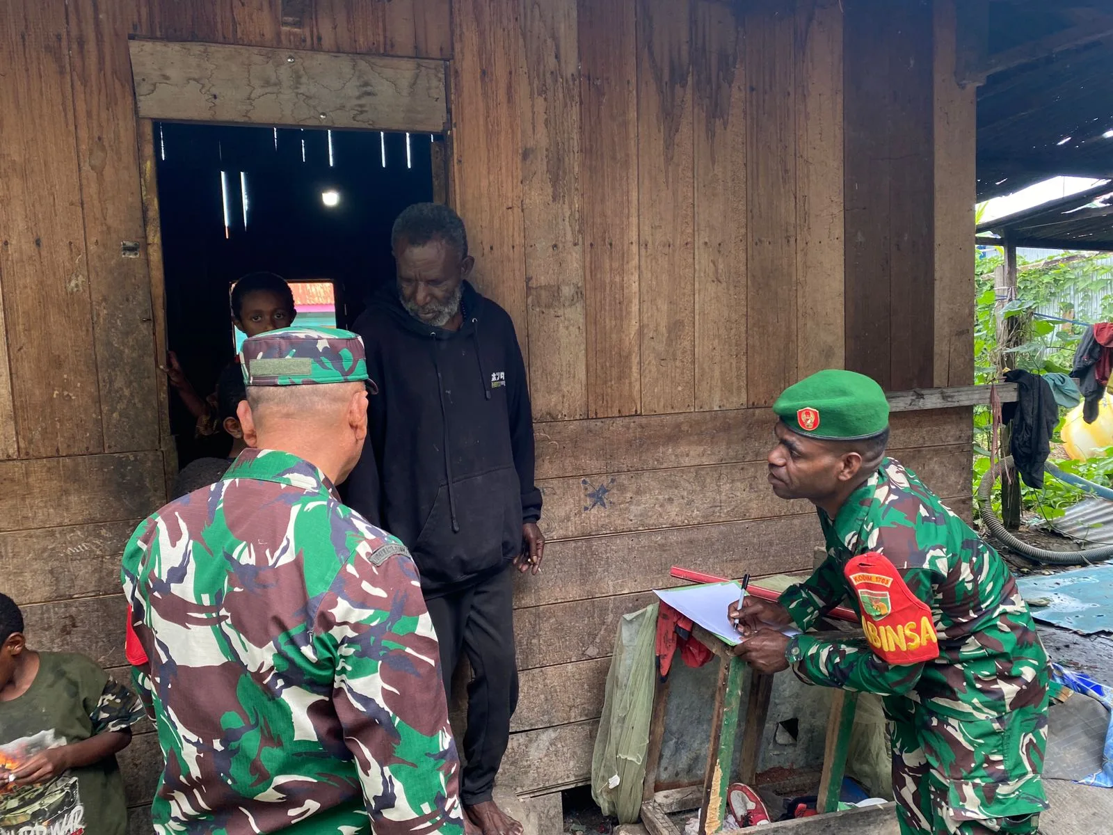 Tigi – Peduli administrasi danramil 1703-02/Tigi dan anggota Babinsa Koramil mendata Akte Kelahiran bagi warga yang belum memiliki akte kelahiran untuk anak anak nya . Inisiatif ini menjadi bagian dari upaya TNI untuk membantu masyarakat di wilayah binaannya khususnya dalam hal administrasi kependudukan, di kampung Idege, Distrik tigi, kabupaten Deiyai, provinsi Papua Tengah,Kamis (19/02/2026).