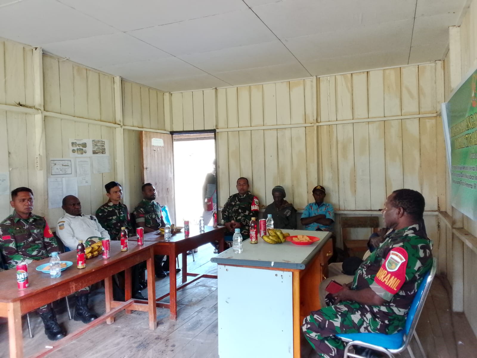 Kegiatan komunikasi sosial (komsos) tingkat distrik yang dilaksanakan bersama staf distrik dan warga masyarakat Aradide dapat berjalan lancar dan Aman