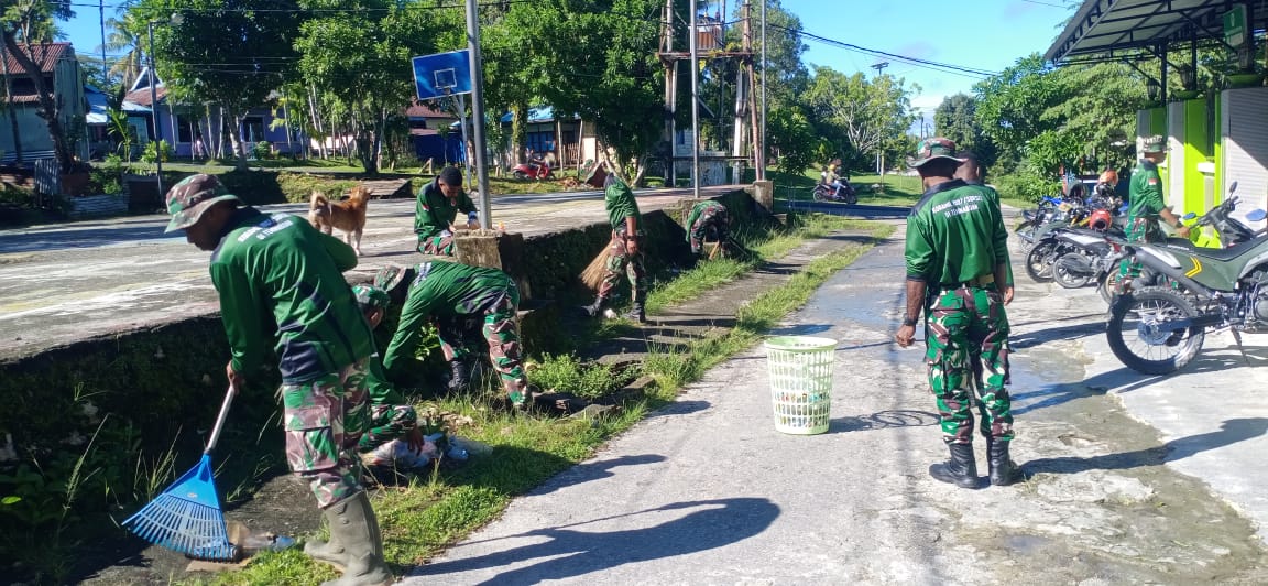 Danramil 1807-01/teminabuan Kapten Inf Deny P Manuhutu memimpin langsung kegiatan karya bakti membersihkan sarana ibadah Masjid Ar Rahman Teminabuan yang di laksanakan oleh anggota Koramil 1807-01 Teminabuan.