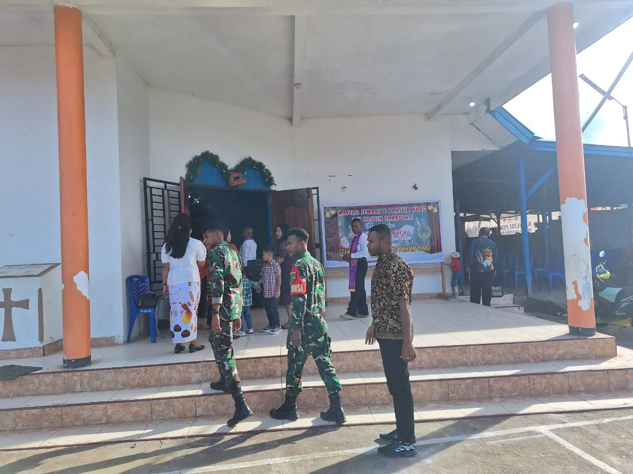 Enarotali – Danramil 1703-01/Enarotali Kapten Inf Eko Warsito bersama para Babinsa menghadiri Ibadah Natal bersama Jemaat GKI Zaitun Enarotali, Bertempat di Gereja GKI Zaitun Enarotali, Jln. Frans Kaesepo, Kampung Dupia, Distrik Paniai Timur, Kabupatan Paniai, Pada Sabtu (13/12/2025).