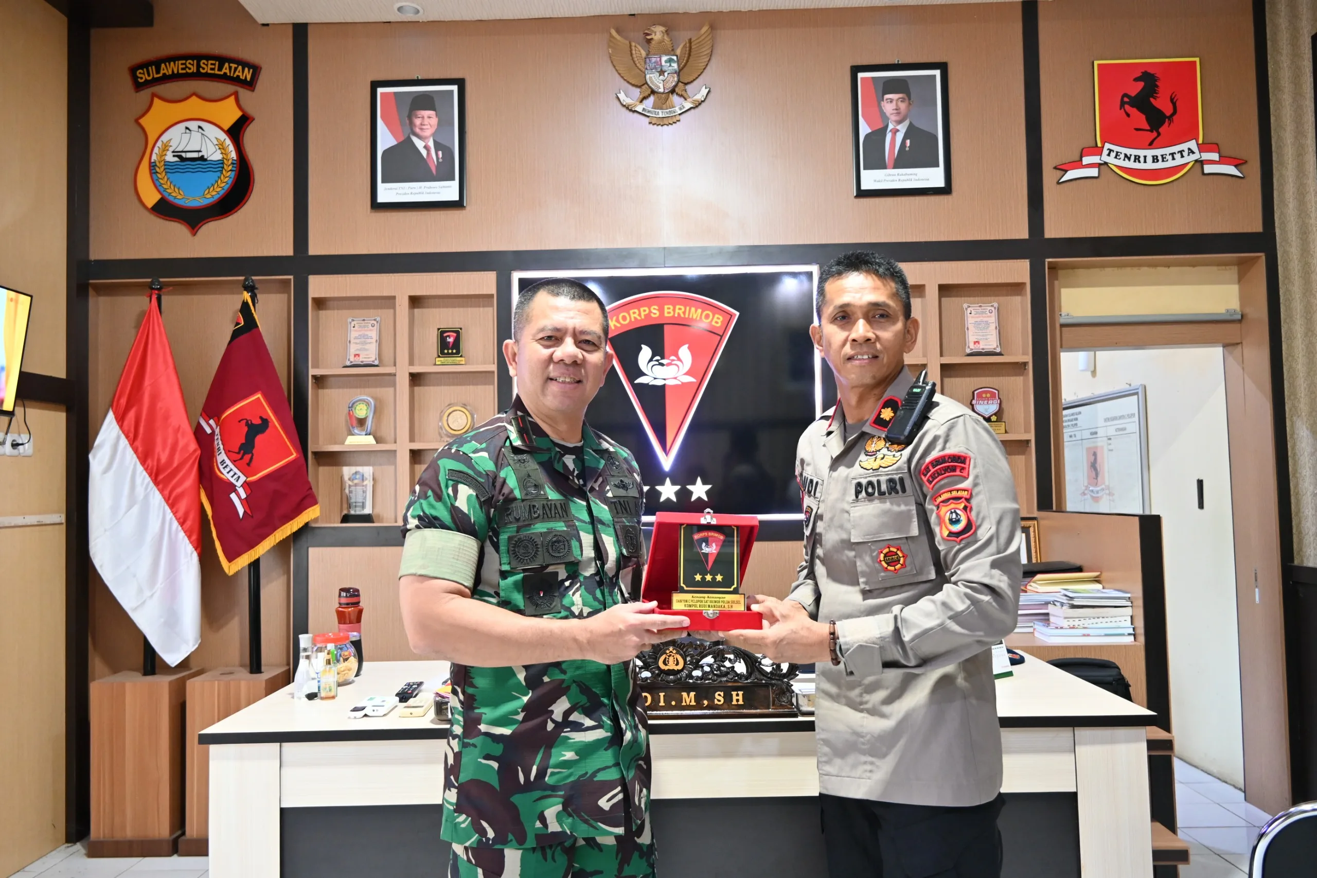 Bone – Komandan Korem 141/Tp, Brigjen TNI Andre Clift Rumbayan, S.Sos., M.M., melaksanakan kunjungan silaturahmi ke Markas Komando Yon C Pelopor Satbrimob Polda Sulsel di Jalan M.H. Thamrin, Kecamatan Tanete Riattang, Kabupaten Bone. Kamis (19/11/2025)