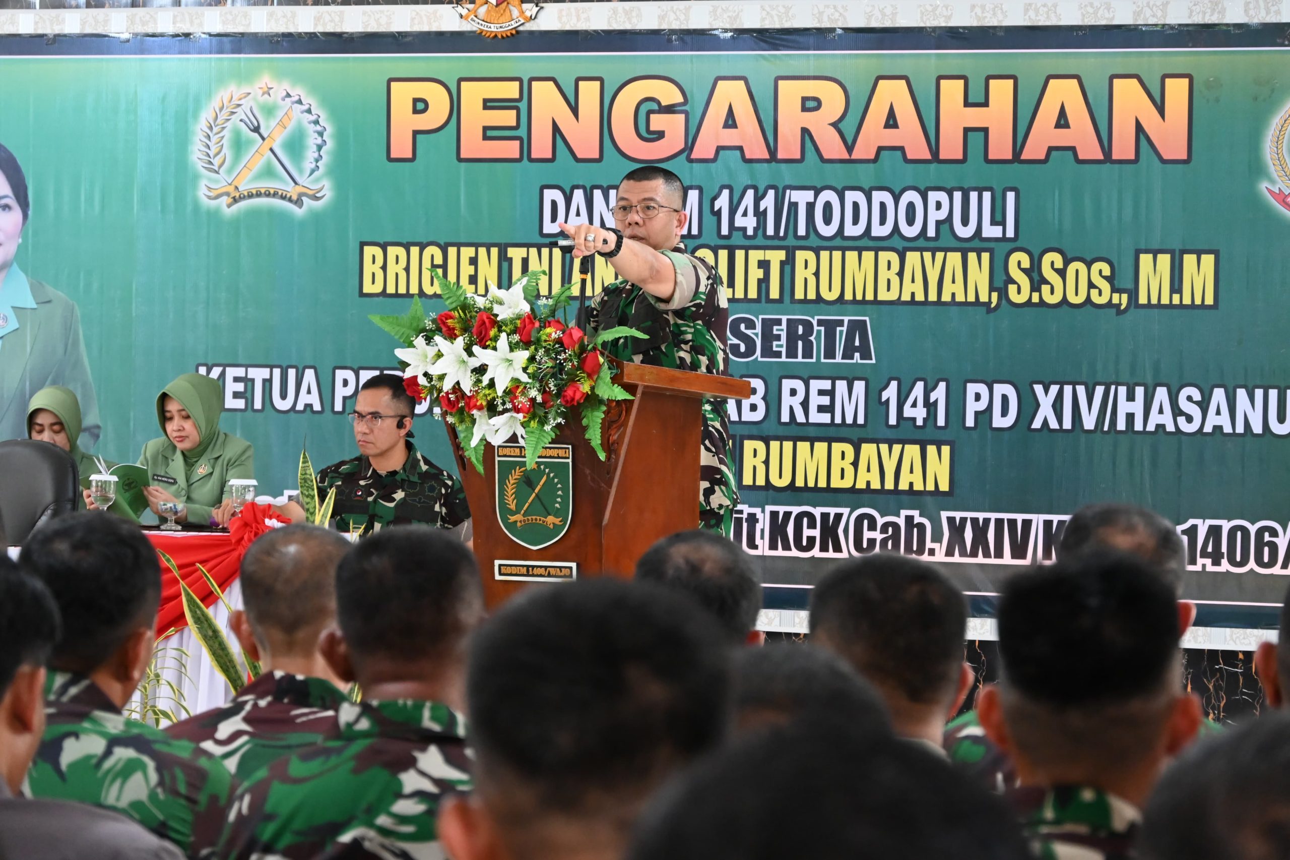 Setelah penyambutan, Danrem menerima paparan singkat dari Dandim 1406/Wajo terkait kondisi satuan dan wilayah. Sementara itu, Ketua Persit KCK Koorcab Rem 141 PD XIV/Hsn menyapa langsung Persit Cabang XXIV Kodim 1406/Wajo dalam kegiatan tatap muka.