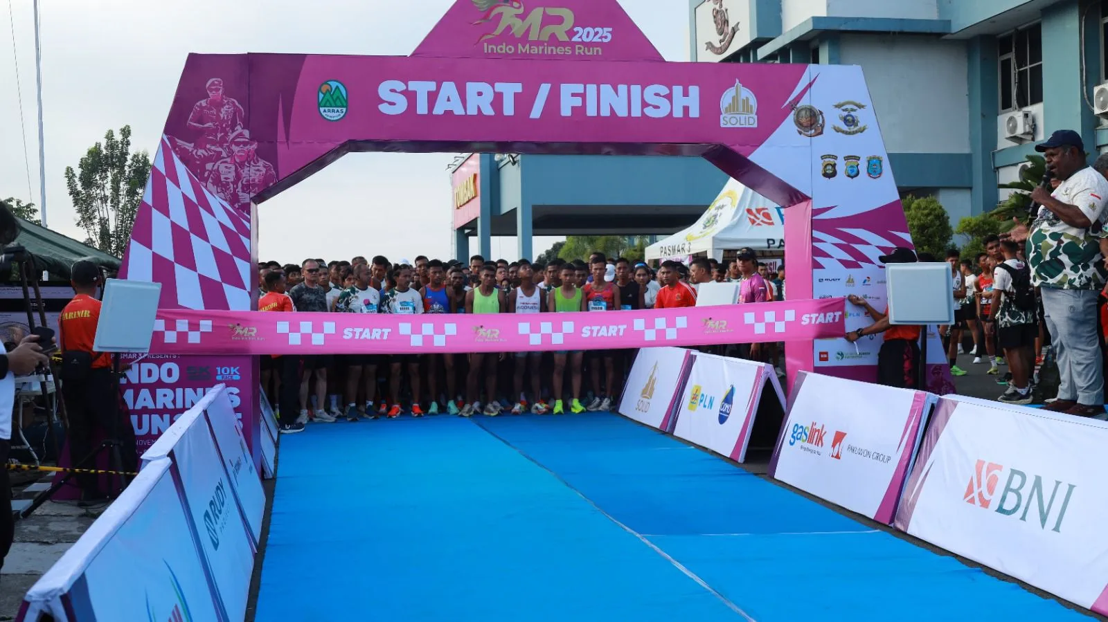 Kas Pangko Armada III Laksamana Pertama TNI Anung Sutanto, S.Sos., M.Si., M.Han., Wadan Kodaearal XIV Laksamana Pertama TNI Anung Sutanto, S.Sos., M.Si., M.Han. beserta Ibu., Kabinda Papua Barat Daya Brigjen TNI I Ketut Arthajaya, S.AP., S.Sos., M.H., Wali Kota Sorong Septinus Lobat, S.H., M.PA., Wakil Wali Kota Sorong H. Anshar Karim, A.Md., Irwasda Polda Papua Barat Daya Kombes Pol Fernando Napitupulu, S.I.K., Danmen 2 Pas Brimob 3 Kombes Pol Syaiful Anwar, S.I.K., Dirpolairud Polda PBD Kombes Pol Budi Utomo, S.I.K., Kakesbangpol PBD Dr. Selvyana Sangkek, S.E., M.Si., Kadispora PBD Yusdi Lamatenggo, S.Pi., M.Si., Dandim 1802/Sorong Letkol Inf Renaldi, S.IP., M.Han., Danyon 762/VYS Letkol Inf Sujarwo, S.H., Danyon Zipur 20/PPA Letkol Czi Coko Sasongko, S.Hub.Int., M.Sc. Danyon TP 806/SI Letkol Inf Hadi Wibowo, S.I.Kom. Para PJU Pasmar 3 Serta para Peserta Lomba Indo Marines Run Tahun 2025, (Penrem 181/PVT).
