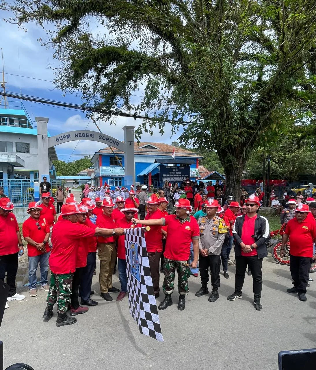Sorong — Papua Barat Daya Komandan Korem 181/Praja Vira Tama, Brigjen TNI Slamet Riadi, S.I.P., menghadiri Karnaval Santa Claus Natal Tahun 2025 di pimpin langsung oleh Wali Kota Sorong Septinus Lobat, S.H., M.PA yang digelar meriah di Sekolah Usaha Perikanan Menengah (SUPM) Sorong di Jalan Perikanan, Kelurahan Klademak, Distrik Sorong Barat, Kota Sorong, Papua Barat Daya., Senin (01/12 /2025).