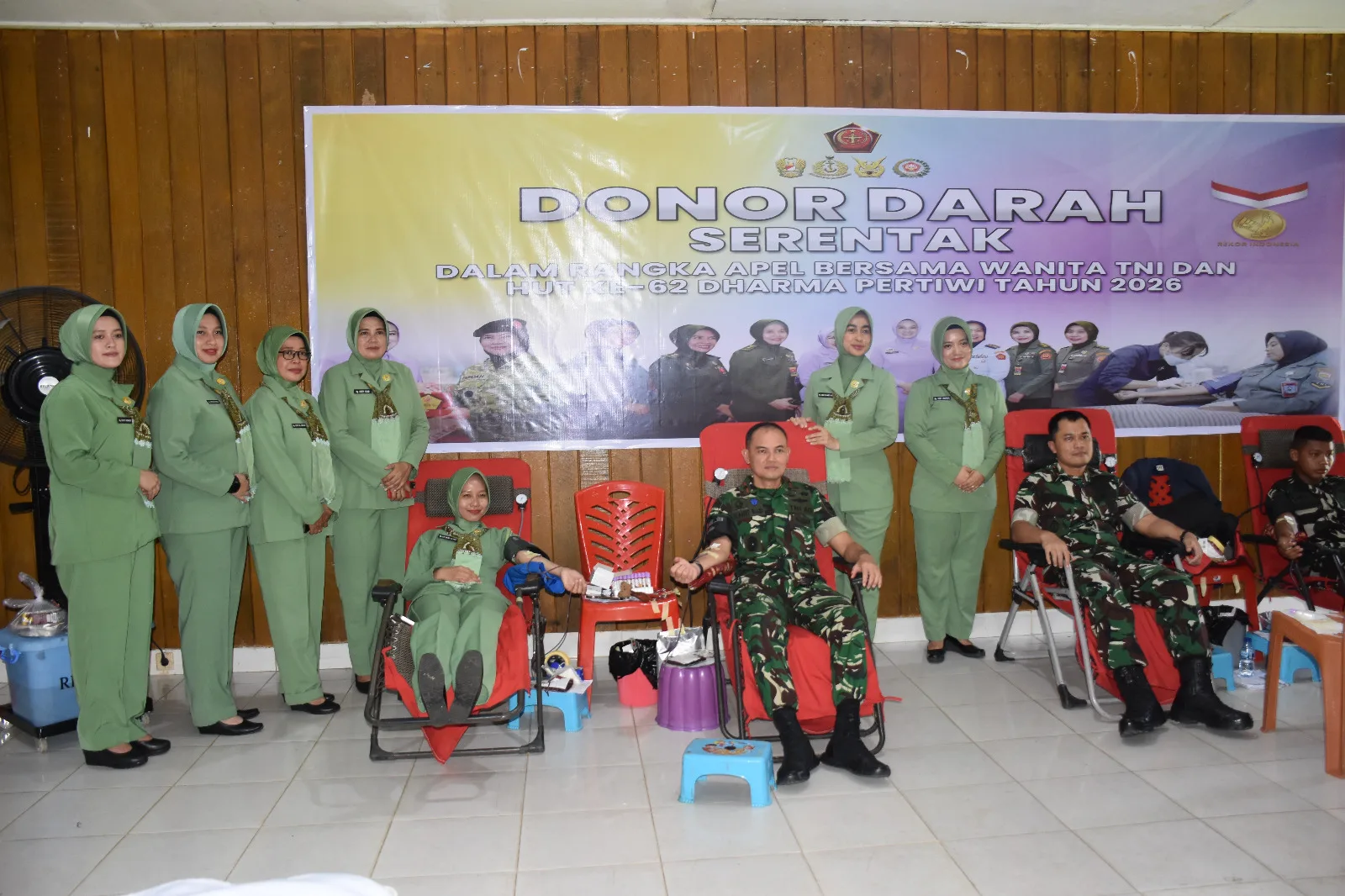 Danrem 181/PVT Ikut Donor Darah Serentak dalam Rangka Apel Bersama Wanita TNI dan HUT ke-62 Dharma Pertiwi Tahun 2026