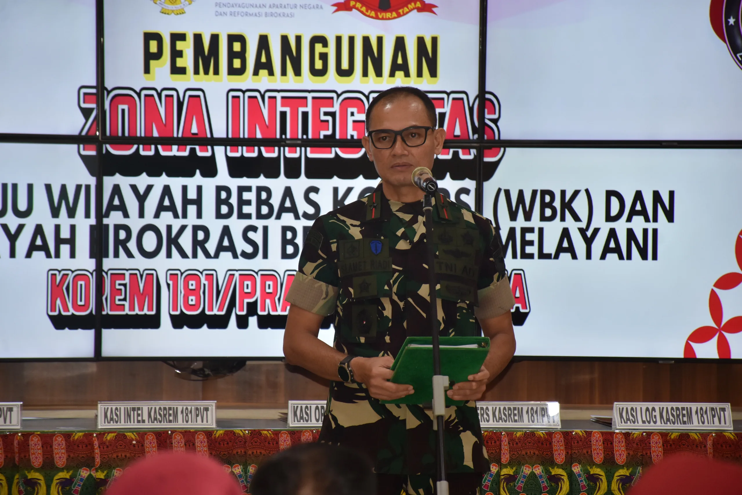 Kegiatan ini turut dihadiri oleh Plt Kepala Kesbangpol Prov Papua Barat Daya, Asrena Kodaeral XIV, Perwakilan Kepala Kejaksaan, Kabag Ops Polresta Sorong Kota, Perwakilan Tokoh Agama, Perwakilan Tokoh Masyarakat, Kasi Ren Kasrem 181/PVT, Para Kasi Korem, Para Dan/Kabalak Aju Kodam XVIII/Kasuari, Para Dan/Kabalak Rem 181/PVT, serta seluruh prajurit dan PNS di lingkungan Korem 181/PVT. Dalam rangkaian acara, dilaksanakan penandatanganan pakta integritas sebagai simbol kesungguhan seluruh personel dalam mendukung program tersebut.