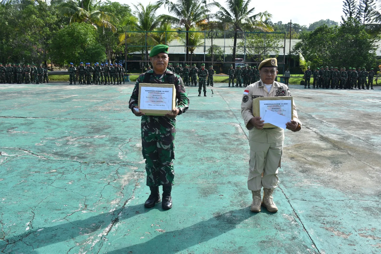 Usai pelaksanaan upacara, kegiatan dilanjutkan dengan pemberian parcel Lebaran kepada seluruh anggota Korem 181/PVT. Pemberian ini merupakan bentuk perhatian dan kepedulian Pimpinan terhadap kesejahteraan prajurit dan keluarga, khususnya dalam menyambut Hari Raya Idul Fitri 1447 H.