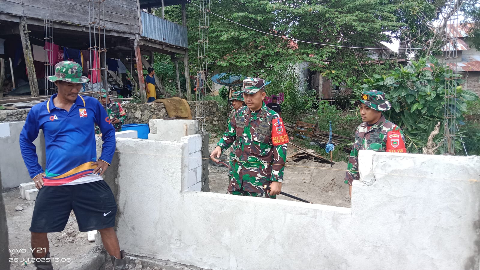 Dalam kunjungannya, Letkol Agung Yuhono memantau progres pembangunan rumah serta memberikan arahan langsung kepada para personel Satgas di lapangan.