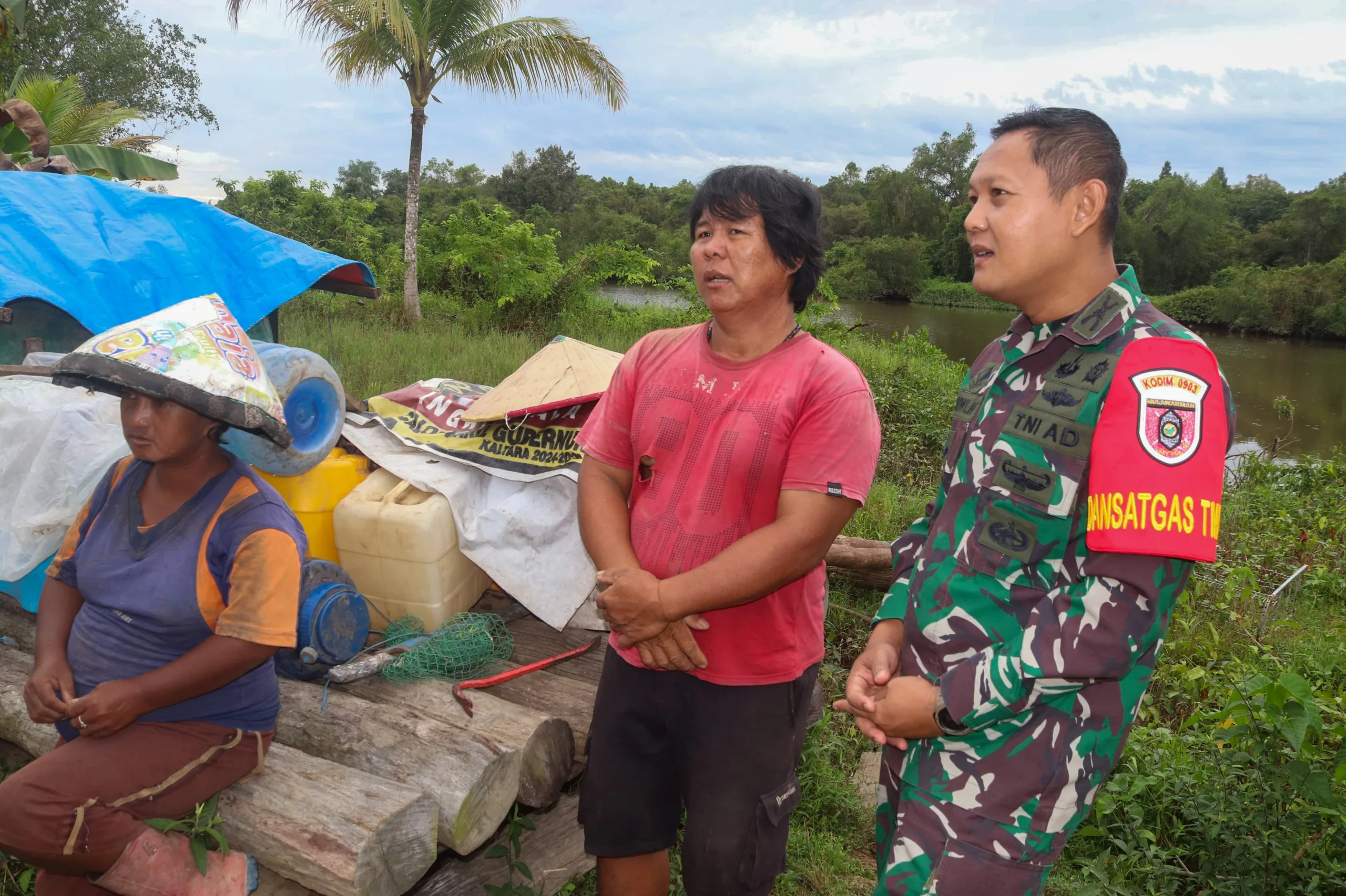 Letkol Inf Dhuwi Hendradjaja, S.Sos., M.I.Pol., Dansatgas TMMD ke-127 Kodim 0903/Bulungan turun langsung menemui pemilik Rumah Tidak Layak Huni (RTLH) 4, Bapak Binjamin, di RT 16 Betiang, Desa Salimbatu, Kecamatan Tanjung Palas Tengah, Kabupaten Bulungan, Jumat (27/02).