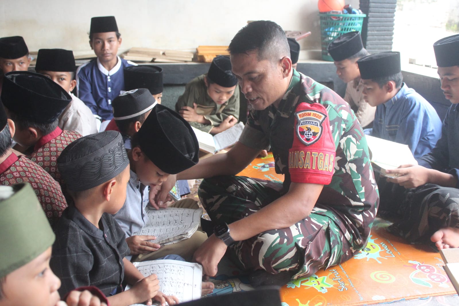 Komandan Satuan Tugas (Dansatgas) TMMD ke-124, Letkol Arm Karimmuddin Rangkuti, tidak hanya memimpin pelaksanaan kegiatan fisik dan non-fisik, namun juga turut serta menjadi guru ngaji bagi anak-anak di desa tersebut.