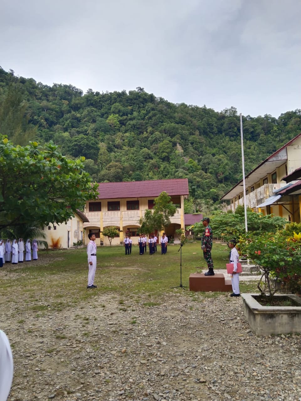 ACEH SELATAN – Dalam rangka menanamkan nilai-nilai kedisiplinan dan cinta tanah air sejak dini, Babinsa Koramil 01/Tapaktuan Kodim 0107/Aceh Selatan Sertu Husni memimpin upacara bendera di SMP Negeri 4 Tapaktuan yang bertempat di Desa Panjupian Kecamatan Tapaktuan, Senin (28/7/2025).