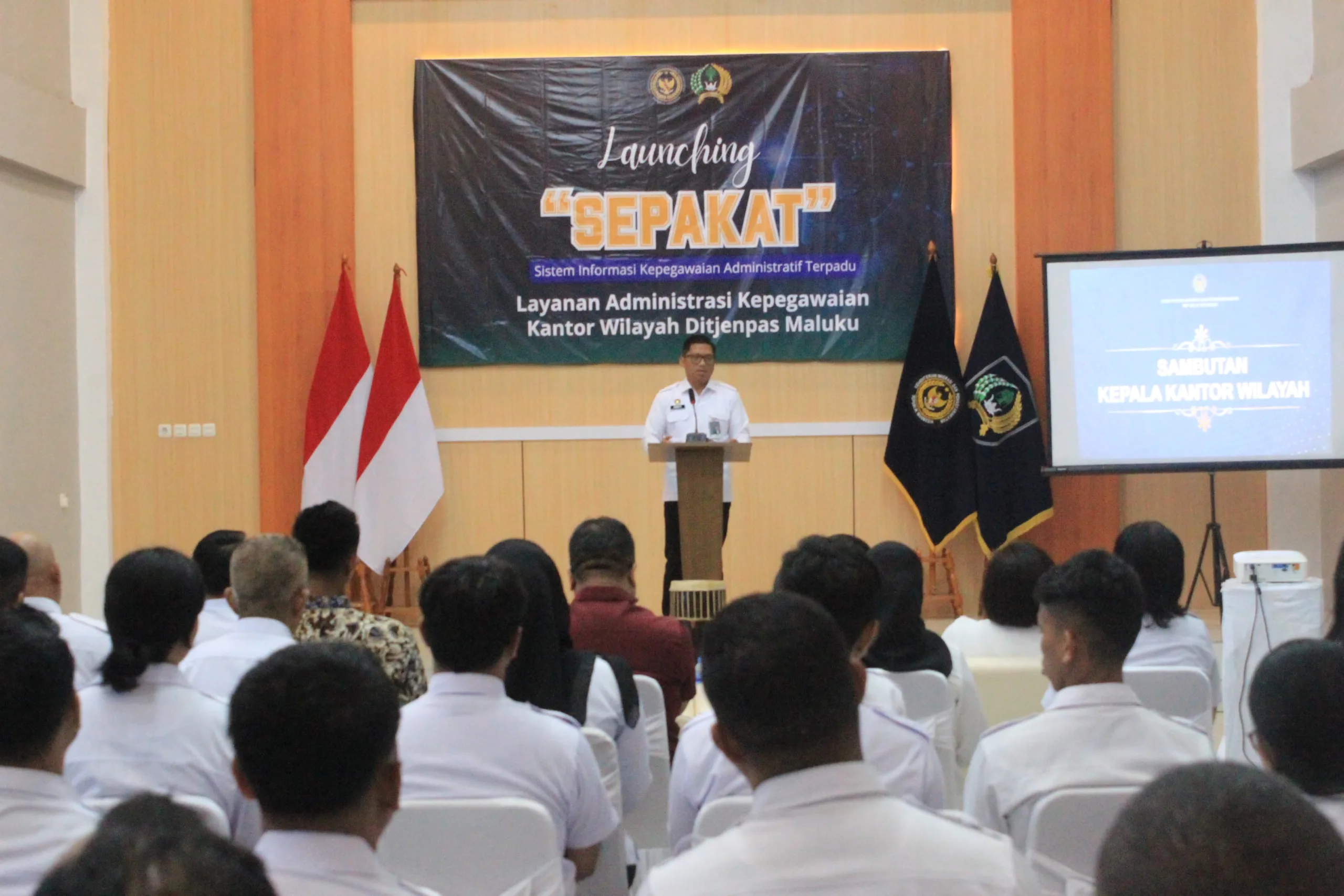 Ambon, INFO_PAS – Kantor Wilayah (Kanwil) Direktorat Jenderal Pemasyarakatan (Ditjenpas) Maluku luncurkan inovasi layanan administrasi kepegawaian berbasis digital bernama Sistem Informasi Kepegawaian Administratif Terpadu (Sepakat). Aplikasi ini dirancang untuk memudahkan pengelolaan data dan proses administrasi bagi seluruh petugas Pemasyarakatan di Maluku.