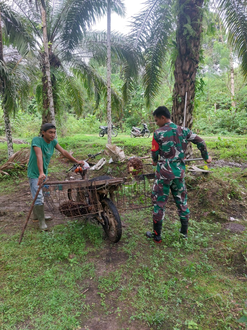 Sertu Joy Darsa Babinsa Koramil 03/Teupah Selatan, Kodim 0115/Simeulue, Korem 012/Teuku Umar. Melaksankan kegiatan Komsos sekaligus membantu warga desa binaan memanen sawit milik warga yang nanti nya akan di jual kepada pembeliDi Desa Kebun Baru, KecamatanTeupah Selatan, Kabupaten Simeulue. Selasa (10/06/2025).