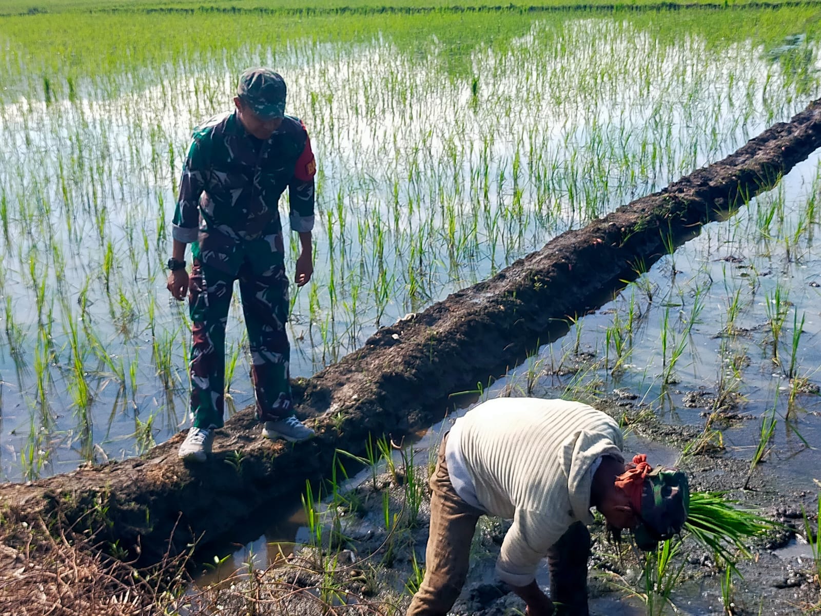 Tindakan Babinsa tersebut merupakan bagian dari upaya untuk mendukung ketahanan pangan di daerah tersebut dengan turun langsung ke sawah untuk membantu petani, memberikan motivasi dan memastikan proses penyulaman padi berjalan lancar.