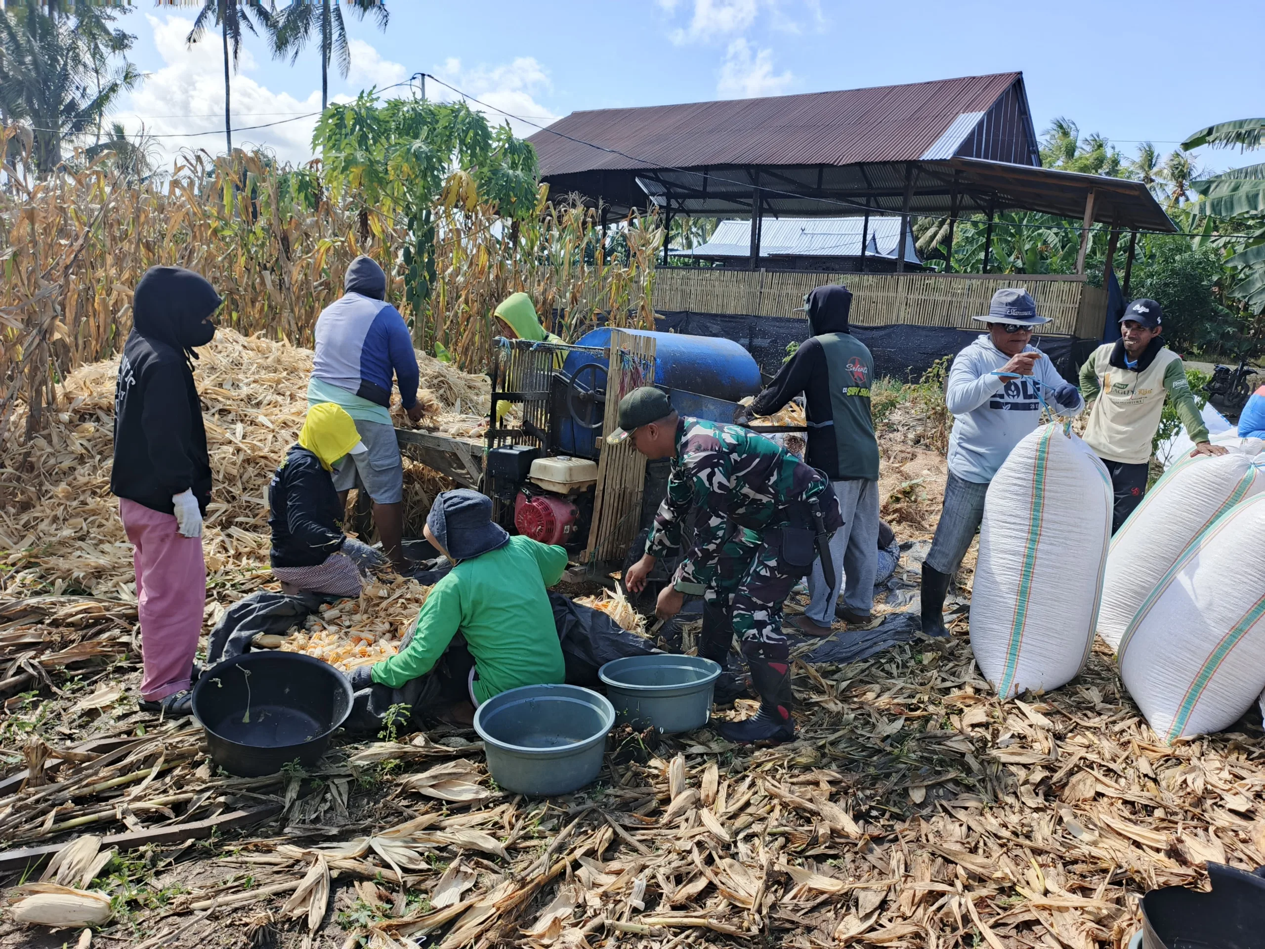 Babinsa Sertu Arief Budi menyampaikan bahwa keterlibatan dirinya dalam kegiatan panen jagung ini merupakan bagian dari tugas pembinaan teritorial guna memperkuat ketahanan pangan di wilayah binaan.