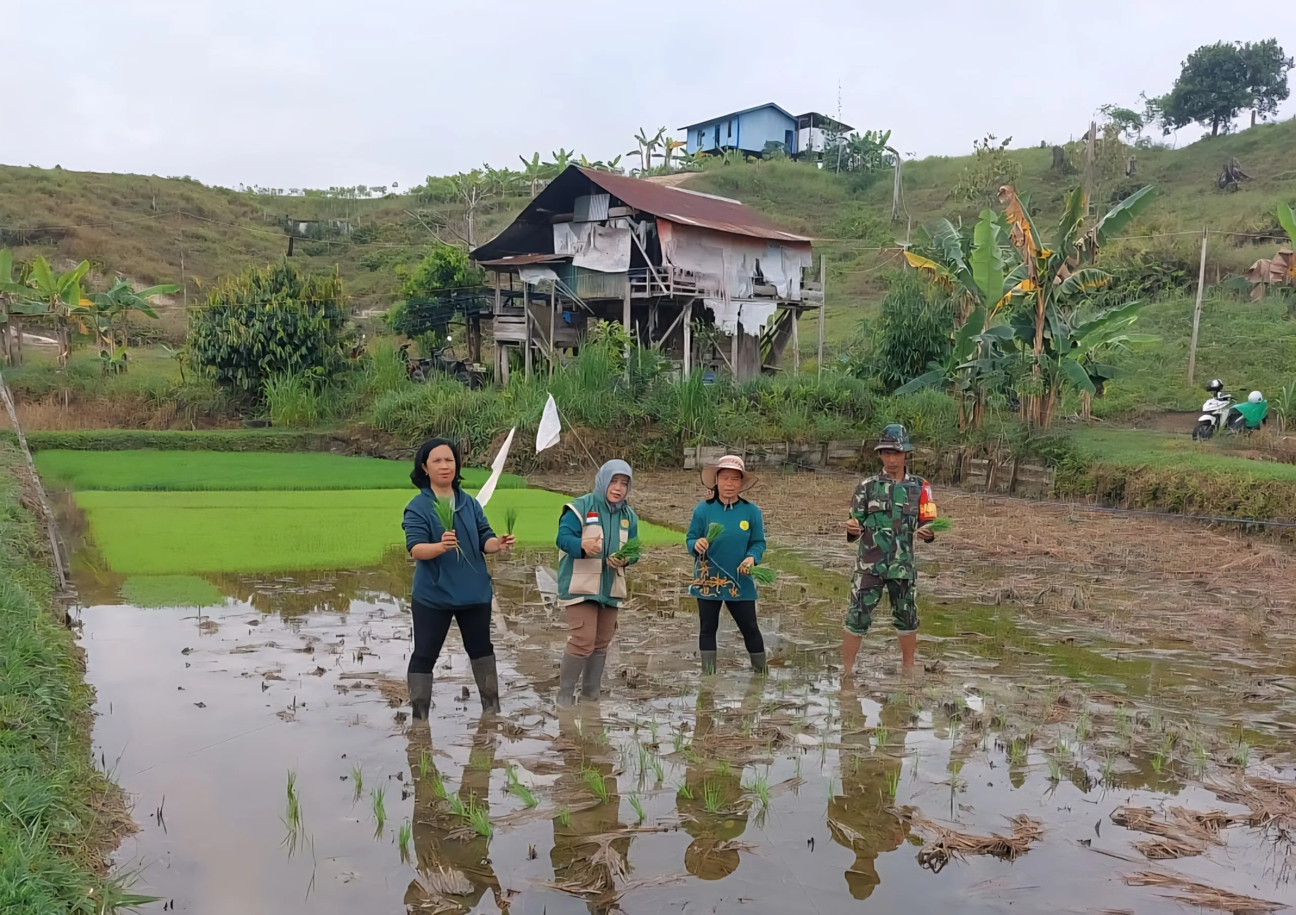 Selain melakukan penanaman padi lanjutnya. Babinsa juga membantu petani dalam menyiapkan dan mengolah lahan pertanian, perawatan tanam hingga masa panen mendatang.