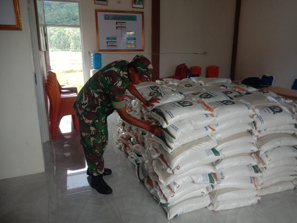 Dukung Program Pemerintah, Personel Babins aKoramil 03/Meukek Dampingi Penyaluran Bantuan Pangan Beras