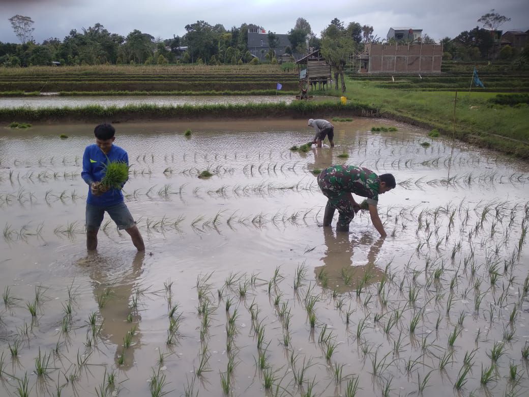 Pendampingan ini dilakukan sebagai bagian dari upaya percepatan tanam padi dengan memanfaatkan sistem irigasi yang tersedia, terutama di musim hujan seperti saat ini. Kehadiran Babinsa di tengah-tengah petani bertujuan memberikan dorongan dan semangat agar para petani tetap antusias dalam mengolah lahan pertanian mereka.
