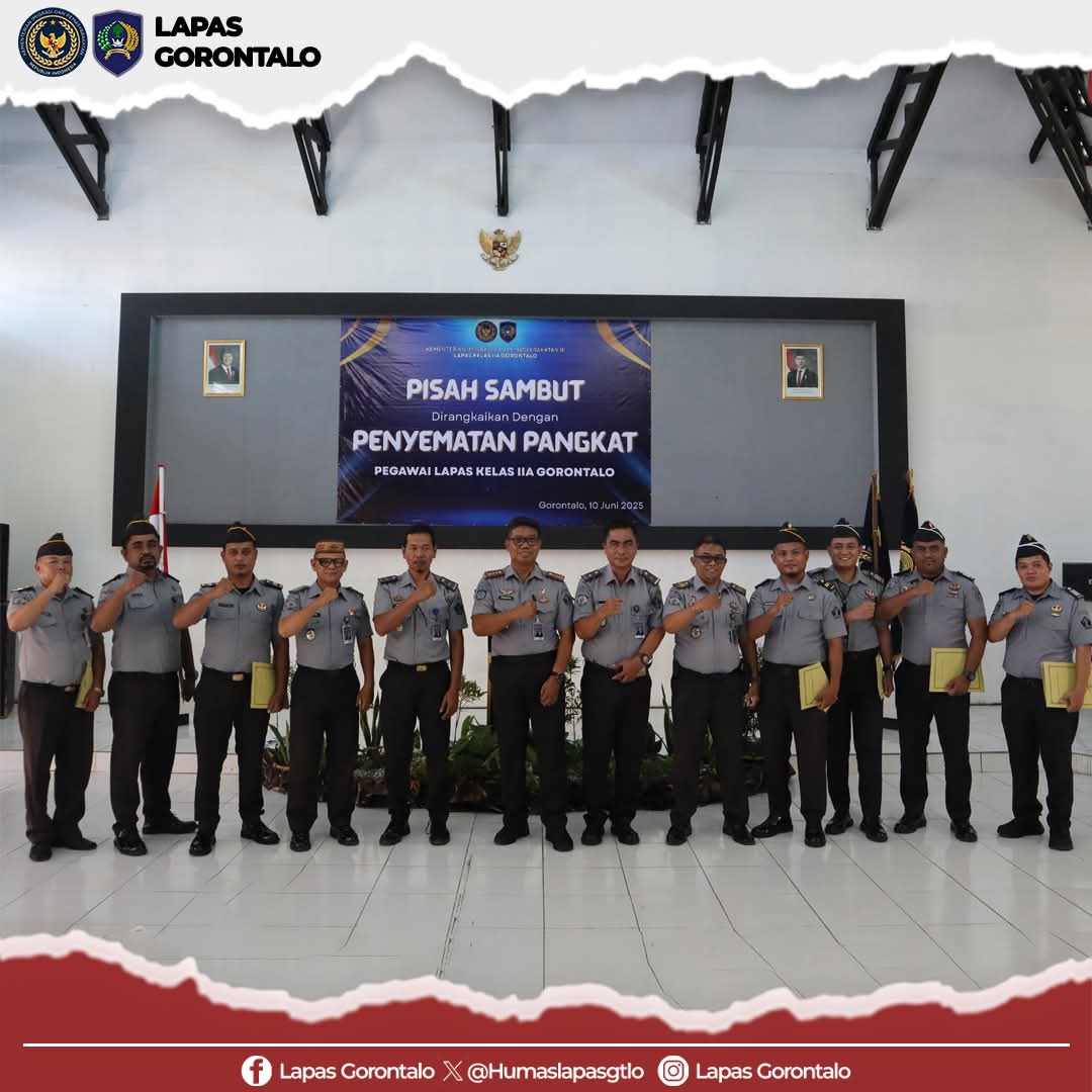 Gorontalo – Info_PAS : Suasana haru sekaligus penuh semangat menyelimuti Lembaga Pemasyarakatan (Lapas) Kelas IIA Gorontalo pada Selasa (10/06). suasana ini menyelimuti acara pisah sambut, pelepasan dua pegawai yang mendapat promosi jabatan ke Lapas lain dan menyambut pejabat baru, sekaligus merayakan kenaikan pangkat sejumlah pegawainya. Momen ini menjadi saksi yang bersejarah bagi Pegawai yang mendapat Promosi Jabatan .