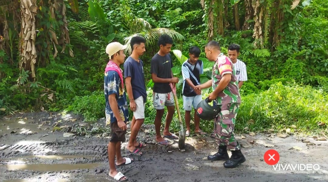 Gerak Cepat, Babinsa Koramil 1502-08/Waipia Kodim 1502/Masohi cegah aksi Pungli (Pungutan Liar) yang dilakukan oleh beberapa masyarakat yang memanfaatkan jalan rusak yang bertempat di Desa Layeni Kec. Teon nila serua Kab. Malteng. Selasa (08/04/2025).