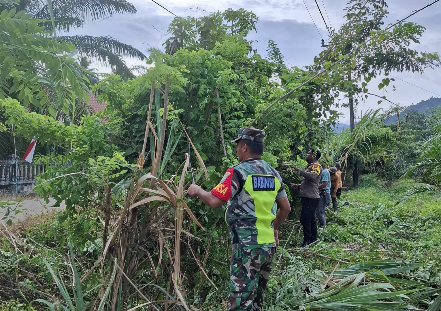 ACEH SELATAN – Menyambut Hari Ulang Tahun ke-80 Republik Indonesia, Babinsa Koramil 08/Bakongan bersama masyarakat Desa Ujung Tanoh Kecamatan Kota Bahagia menggelar Gerakan Aksi Gotong Royong yang melibatkan seluruh elemen desa, mulai dari perangkat desa, tokoh masyarakat serta pemuda, Jumat (08/8/2025).