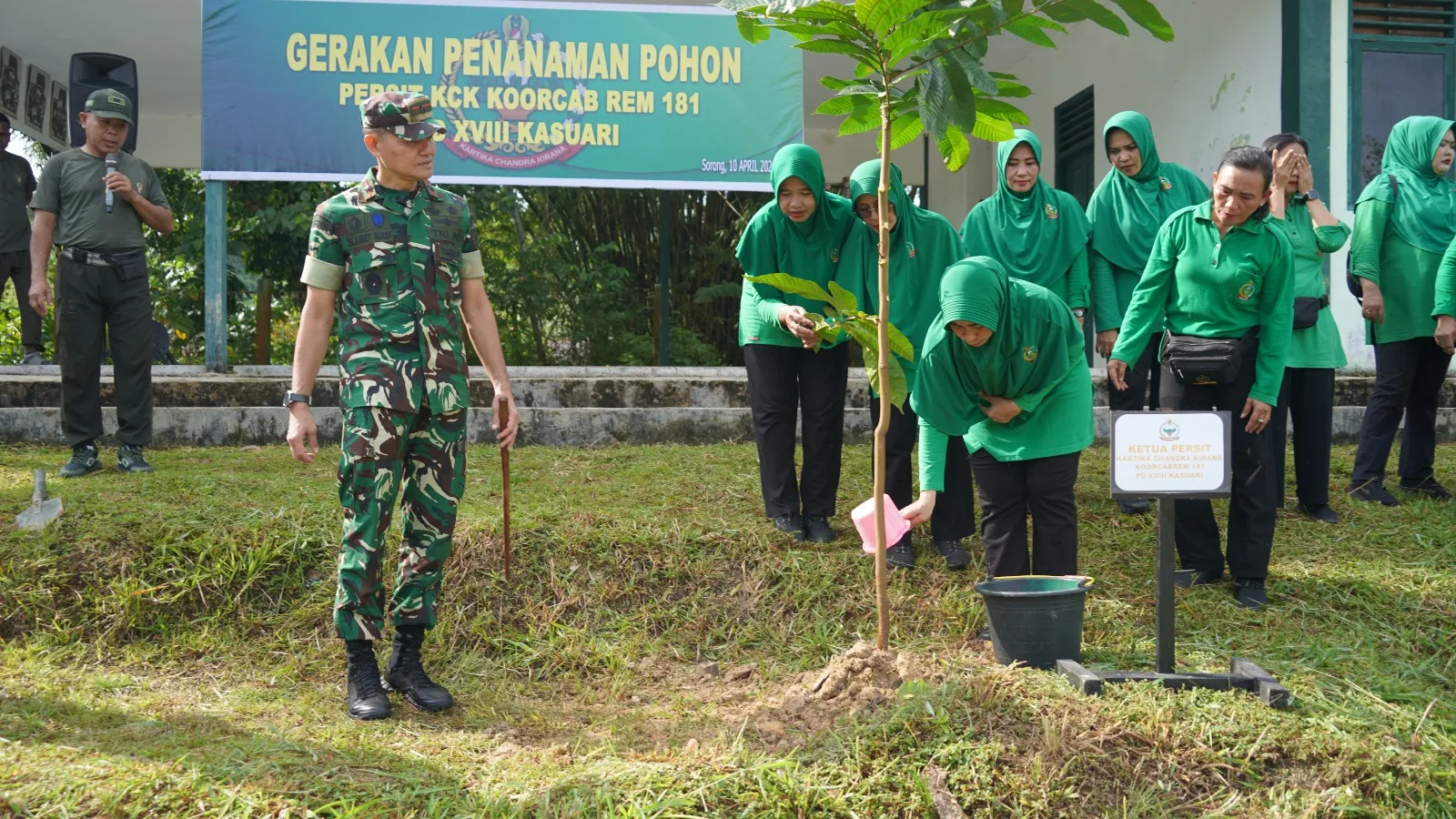 Dalam rangka mendukung pelestarian lingkungan, Persit Kartika Chandra Kirana Koorcab Rem 181 PD XVIII Kasuari melaksanakan kegiatan Gerakan Penanaman Pohon pada Jumat, 10 April 2026.