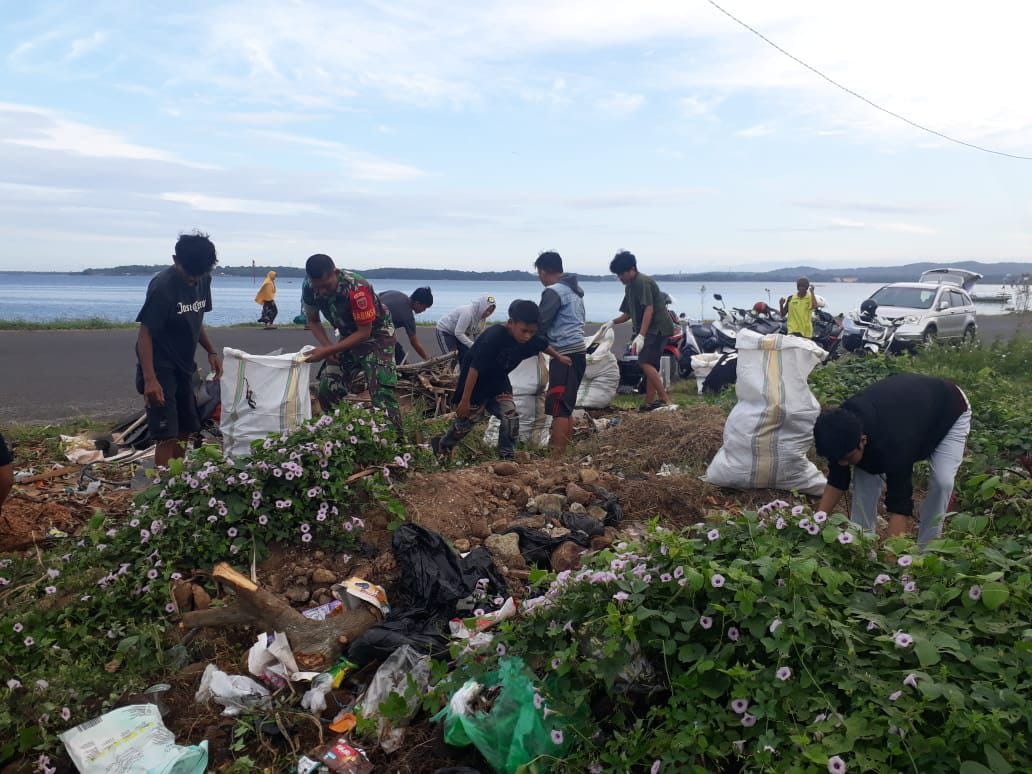 Terlihat Babinsa Koramil-03 bersama warga melakukan gotong-royong pembersihan sampah dan semak sebagai upaya menciptakan lingkungan yang bersih dan sehat, terlebih pada musim hujan bisa menimbulkan sarang nyamuk dan mengakibatkan penyakit Demam Berdarah.