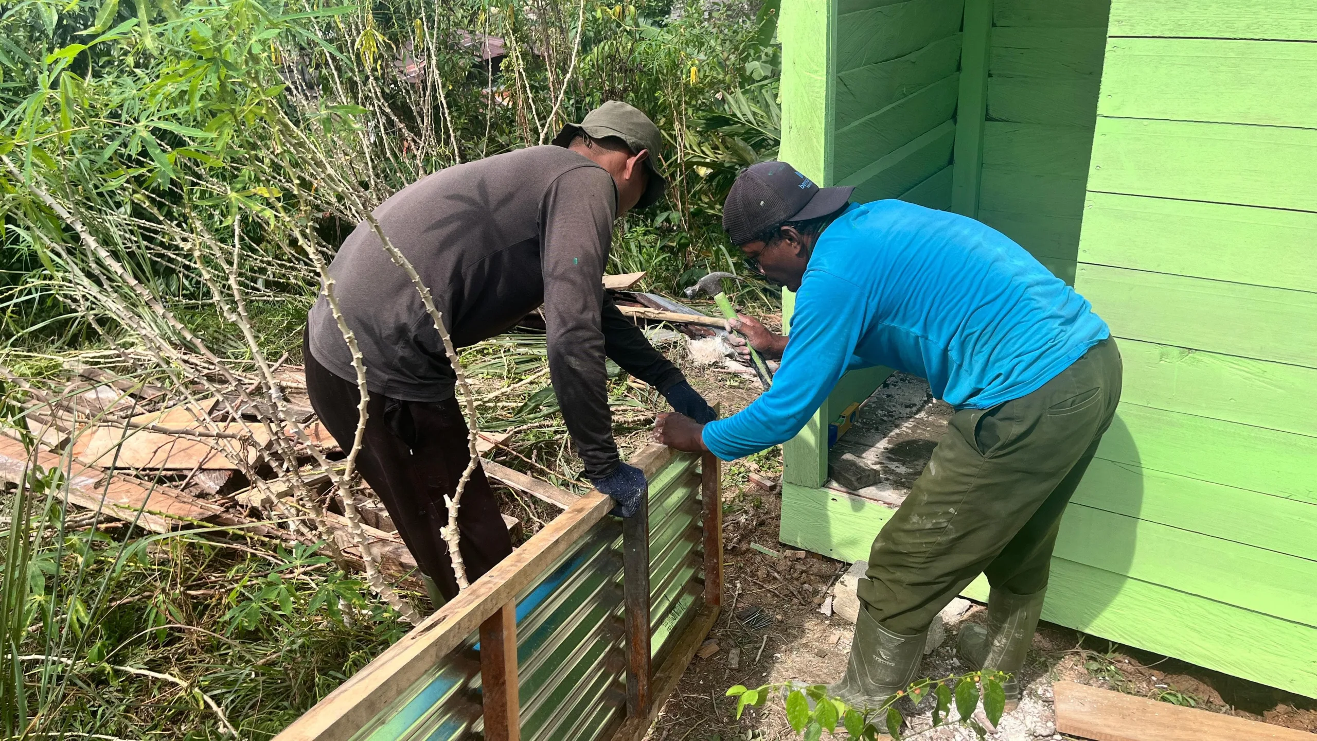 Selain pengerjaan bagian dalam, pembangunan bangunan MCK juga dilengkapi dengan pemasangan atap seng serta penataan area sekitar agar lebih rapi dan aman digunakan oleh jemaat serta masyarakat sekitar.