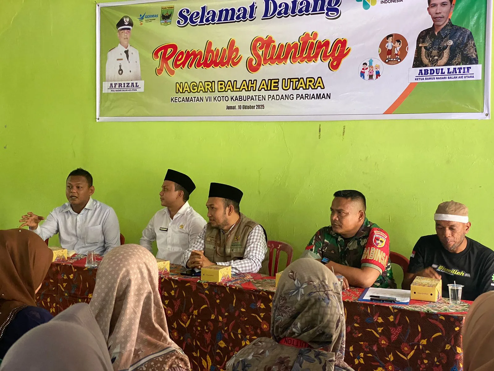 SUNGAI SARIAK, – Anggota Koramil 03/Sungai Sariak Kodim 0308/Pariaman, Koptu Aprisal menghadiri kegiatan Rembuk Stunting ,Strategi Konvergensi Penanggulangan Dan Pencegahan Stunting, bertempat di Posyandu Kamboja IV Korong Lubuk Pua Nagari Balah Aie Utara, Kec.VII Koto, Kab.Padang Pariaman, Jum’at (10/10/2025).