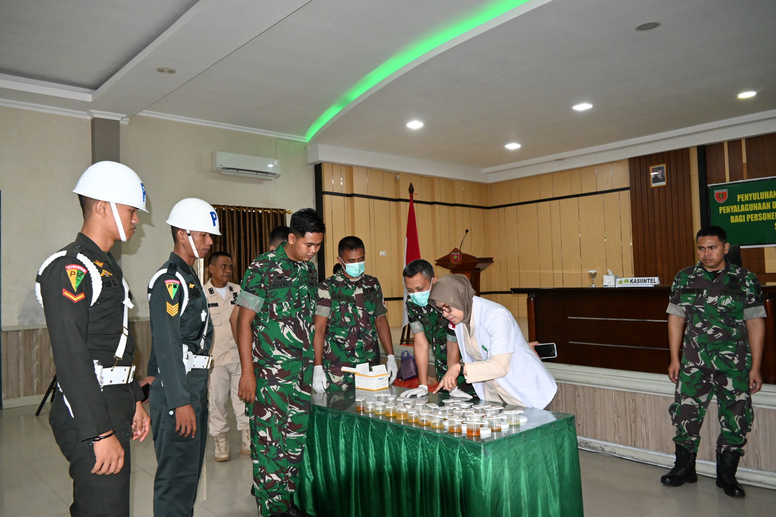 Sebelum melaksanakan pengecekan Urin para personel Korem 141/Tp menerima materi dan pembekalan dari dr. Siti Ragiba Fihi dan dr. Nuraini yang merupakan Dokter di Rumah Sakit Tentara (RST) Dr. M. Yasin Bone tentang bahaya dan dampak yang ditimbulkan dari penggunaan narkoba baik untuk diri sendiri, keluarga dan lingkungan dalam bermasyarakat.(Penrem141)